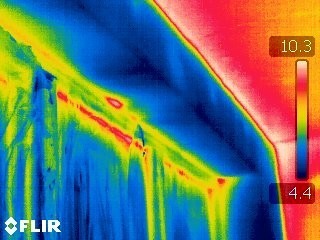 In einem Mehrfamilienhaus in Düsseldorf haben wir nach gerichtlicher Verfügung und Urteil die Schadenssituation analysiert. Hier wurde neben Wärmebrücken an den Fensterstürzen und zum Hauseingang auch eine nicht ausreichende Lüftung vorgefunden. Ein neu eingebauter Lüfter war falsch angeschlossen und zusätzlich durch den nachträglichen Einbau von Laminat keinerlei Luftspalt zur Luftzirkulation vorhanden. Zur Sicherheit wurde direkt der Abluftkanal mit der Endoskopkamera auf Durchgängigkeit geprüft.